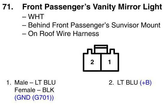 View 71 - Front Passenger's Vanity Mirror Light Connector View