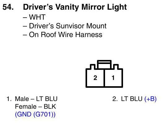 Driver's Vanity Mirror Light Connector View