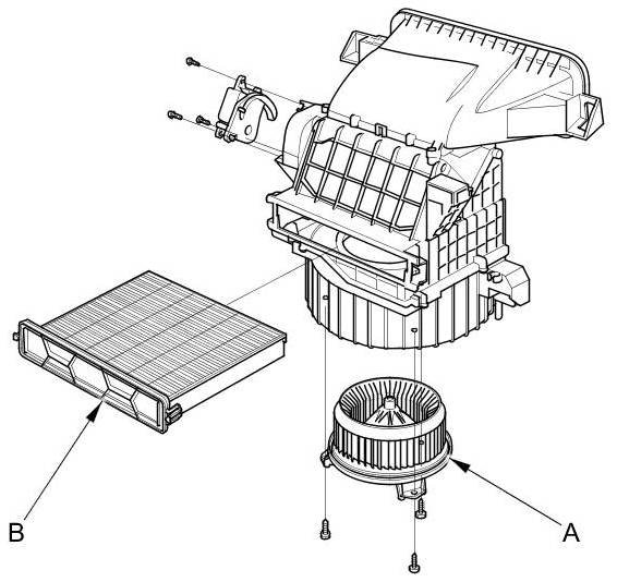 - The front blower motor (A) and the dust and pollen filter (B) can be replaced without removing the blower unit.