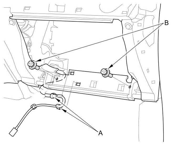 1. Remove the glove box Service and Repair and passenger's dashboard undercover Passenger's Dashboard Undercover Removal/Installation.