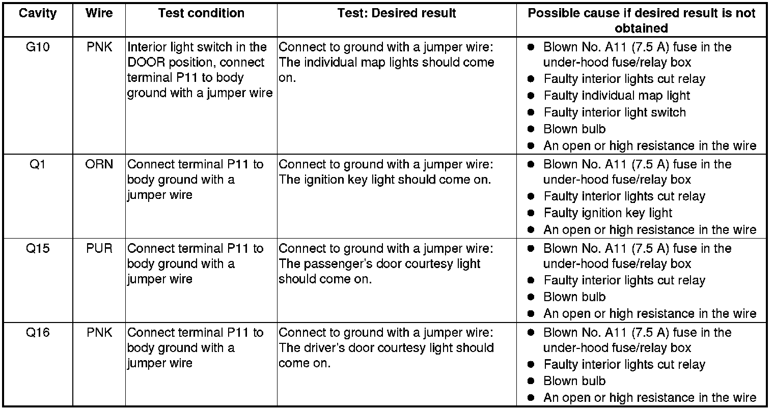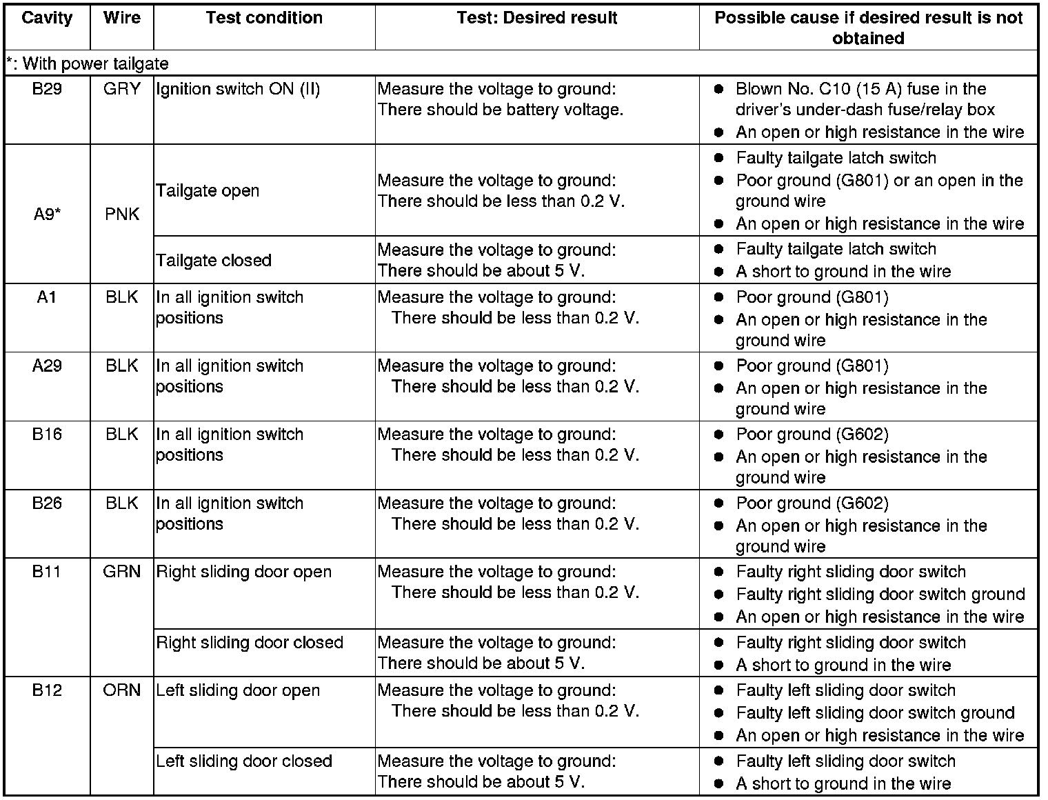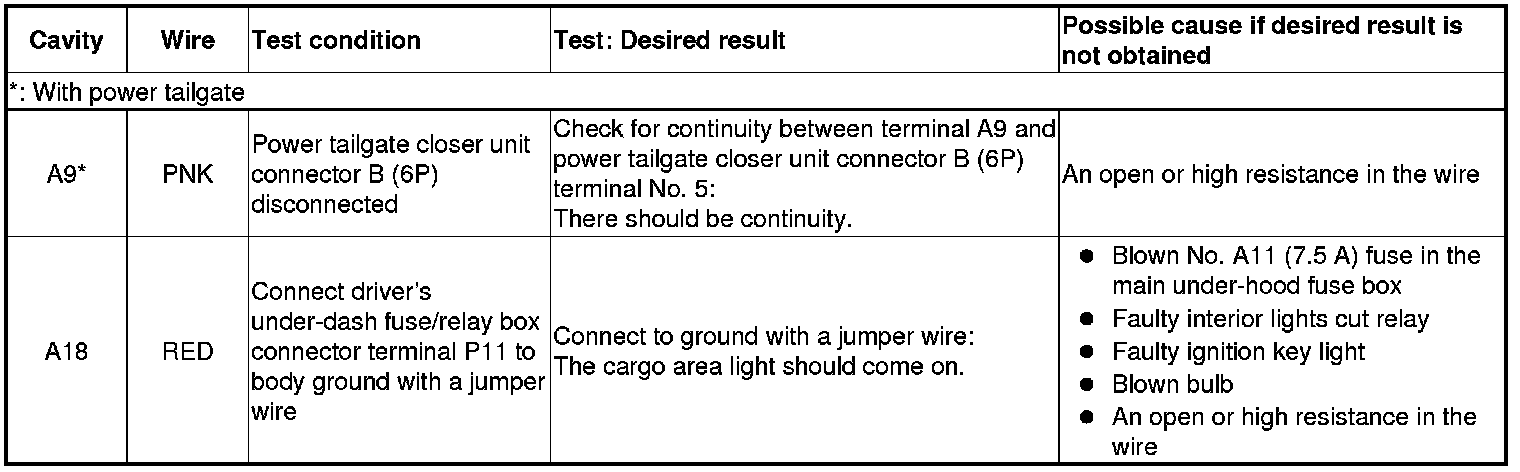 12. Reconnect the connectors to the rear fuse box, and do the following input tests: