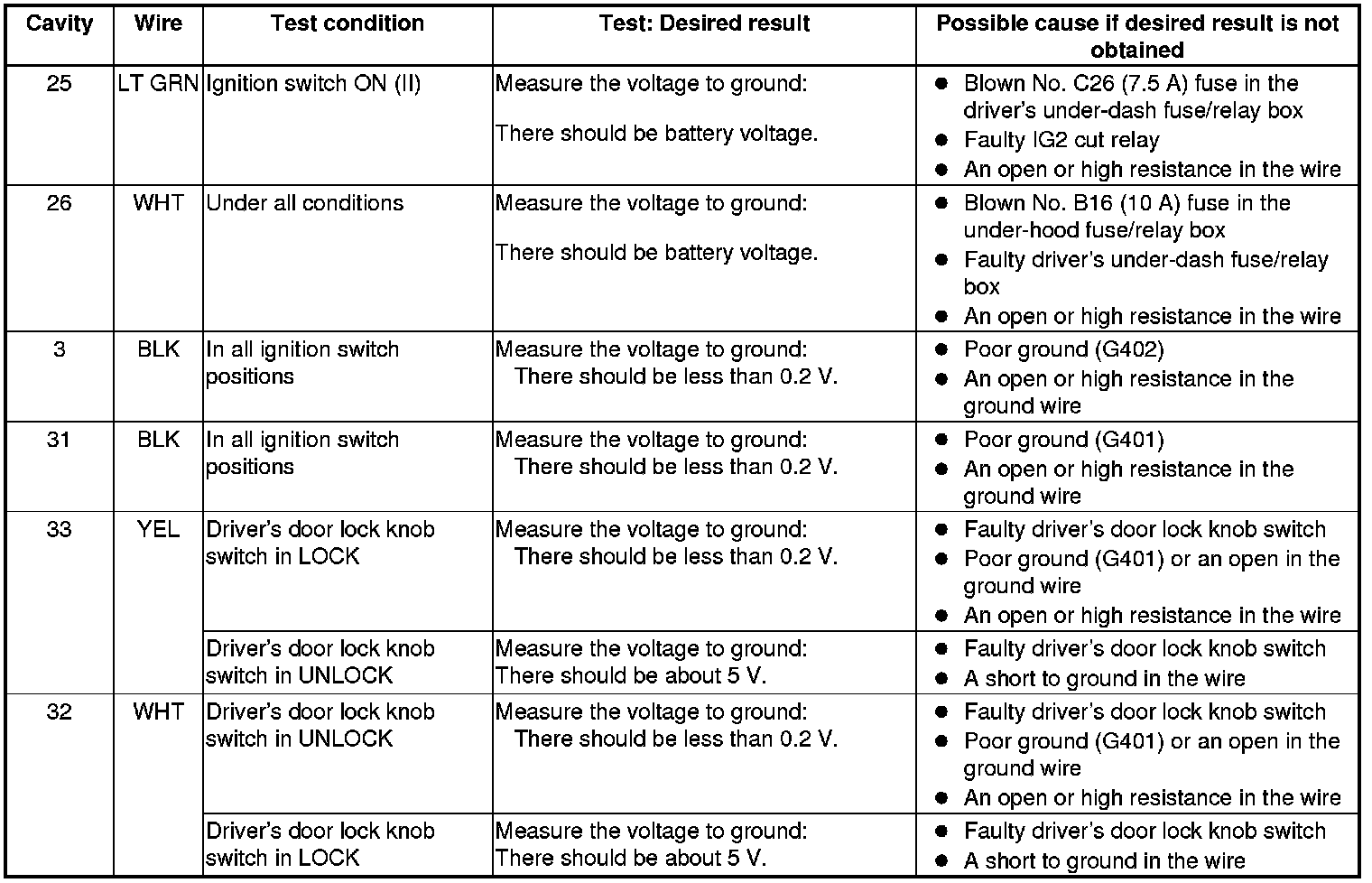 6. Reconnect the connectors to the driver's under-dash fuse/relay box, and do the following input tests: