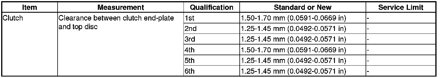 Clutch Specifications (6-Speed A/T)