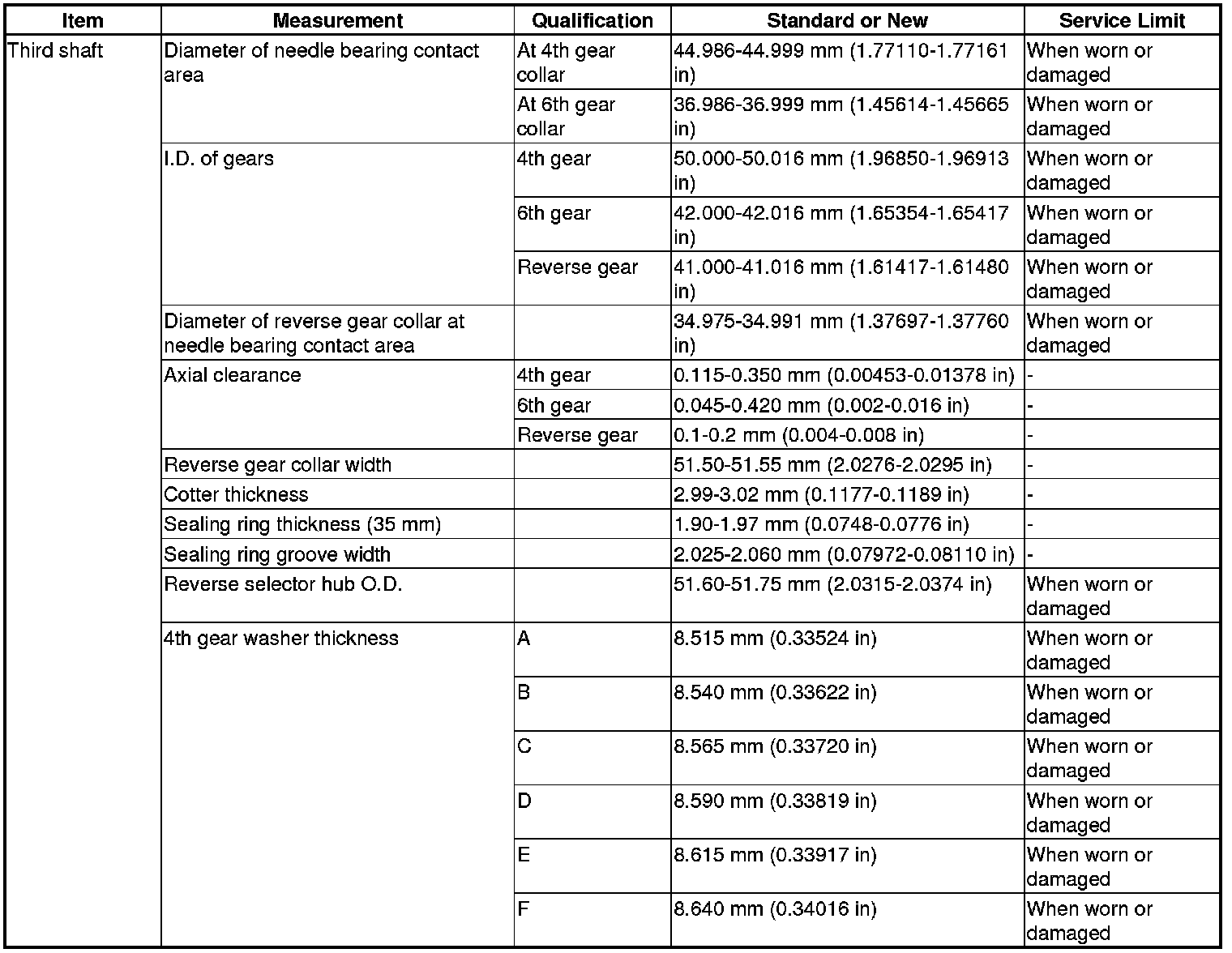 Third Shaft Specifications (6-Speed A/T)