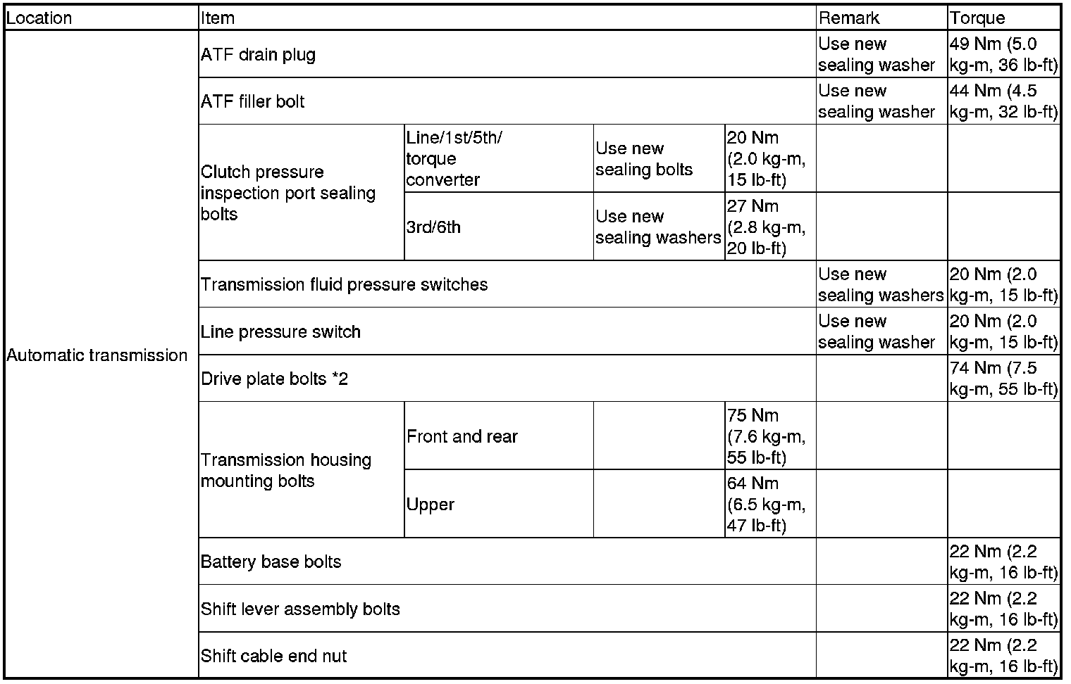 *2: Follow the S/M procedures closely for torque, sequence, and special steps.