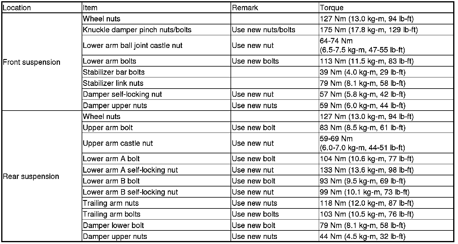 *Refer to the each S/M section for the bolts/nuts not indicated here.