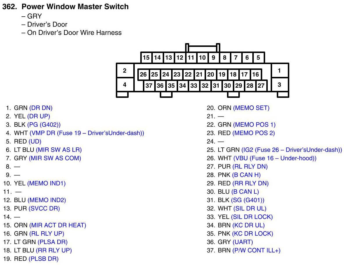 Power Window Master Switch Connector View