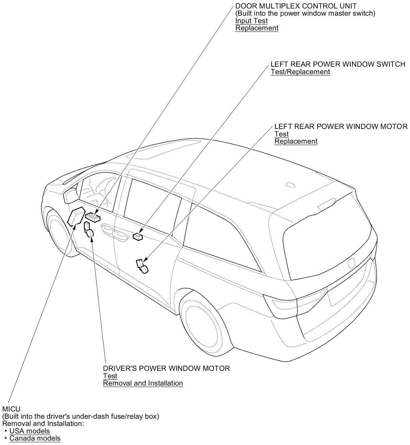 Power Windows Component Location Index