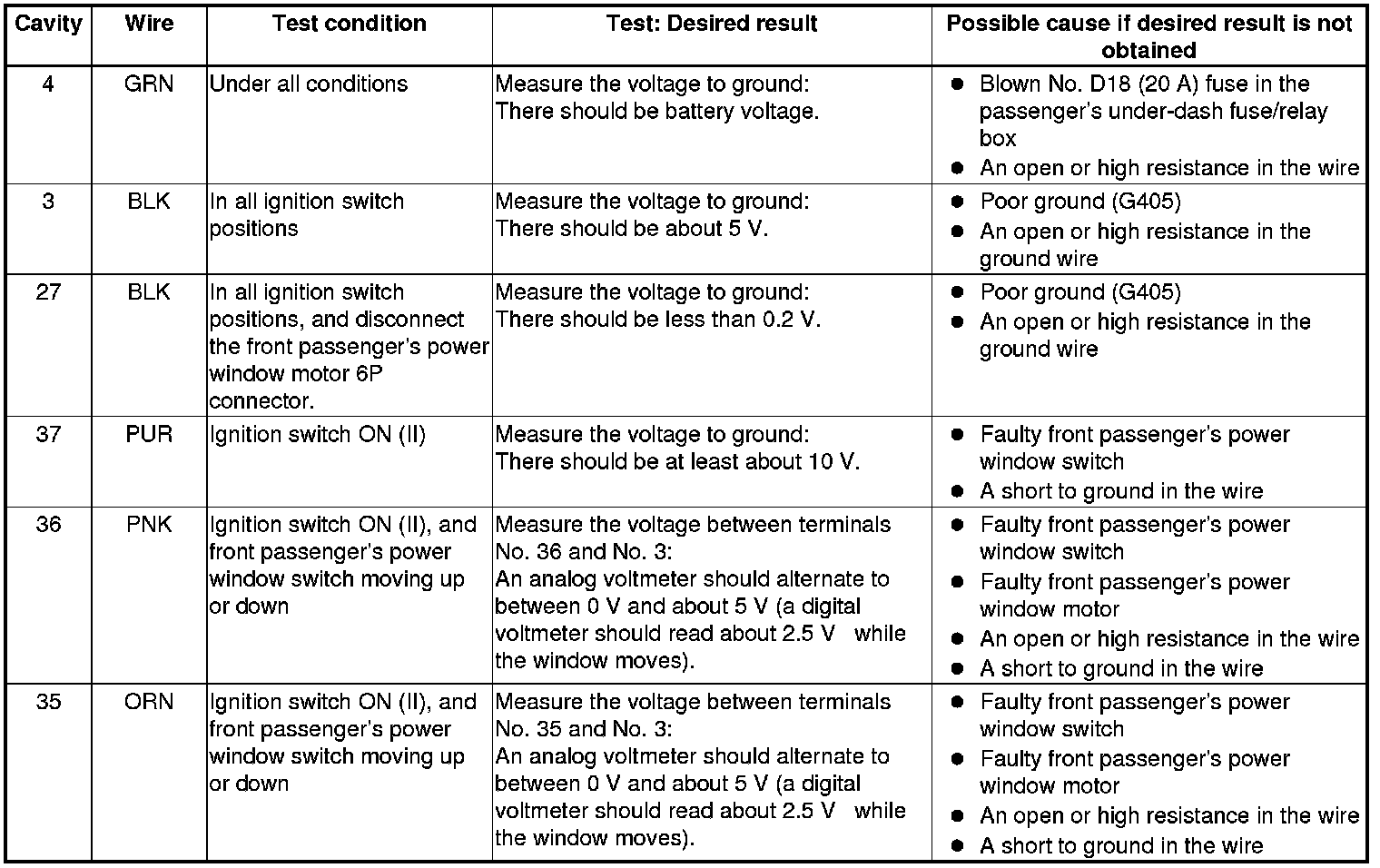 Front Passenger's Power Window Switch Input Test