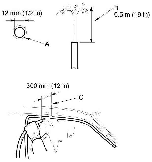 - Hold the hose about 300 mm (12 in) away from the door (C).