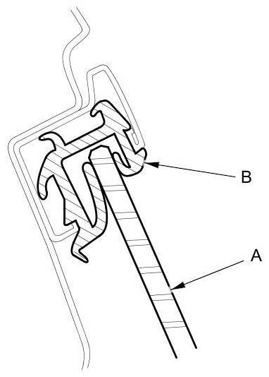 6. Raise the glass fully, and check for gaps. Also check that the glass (A) contacts the glass run channel (B) evenly.