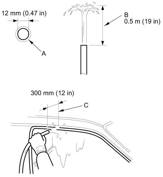 - Hold the hose about 300 mm (12 in) away from the door (C).