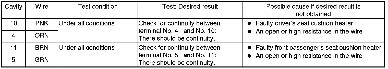 Seat Heater Control Unit Input Test/Replacement