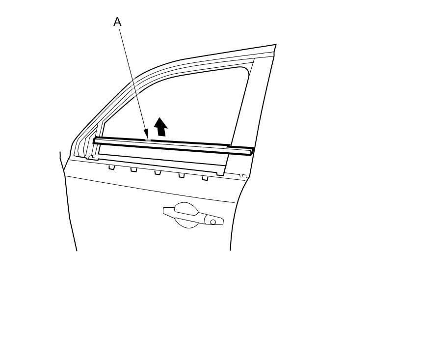 4. Pull the glass outer weatherstrip (A) away from the door.