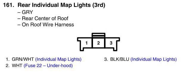 View 161 - Rear Individual Map Lights (3rd) Connector View