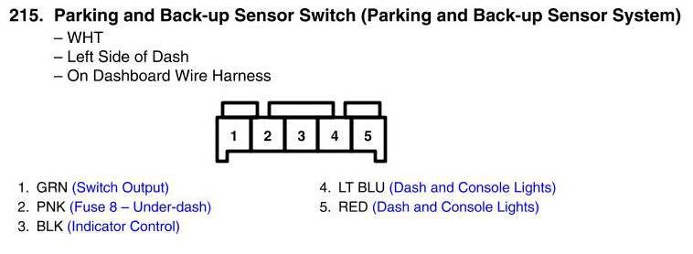 View 215 - Parking And Back-Up Sensor Switch Connector View (Parking And Back-Up Sensor System)