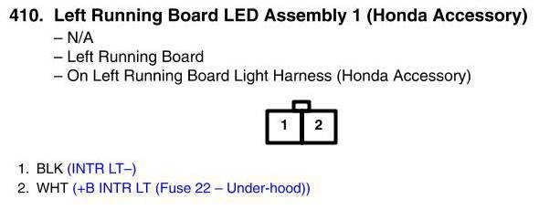 View 410 - Left Running Board LED Assembly 1 Connector View (Honda Accessory)