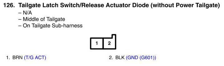 Tailgate Latch Switch/Release Actuator Diode Connector View (Without Power Tailgate)