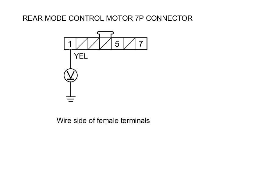 4. Measure the voltage between rear mode control motor 7P connector terminal No. 1 and body ground.