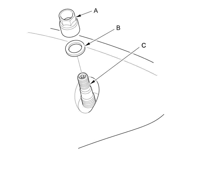 6. Remove the valve stem nut (A) and the washer (B), then remove the tire pressure sensor with the valve stem (C) from the wheel.