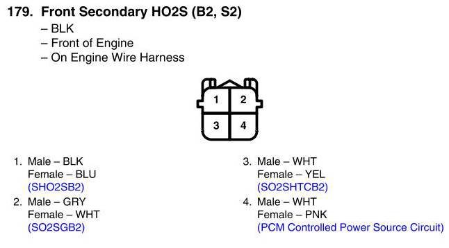 Front Secondary HO2S (B2, S2) Connector View