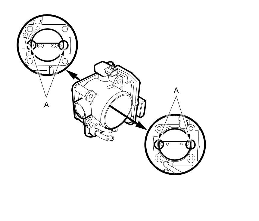 - To avoid removing the molybdenum coating, do not clean the bearing area of the throttle shaft (A).