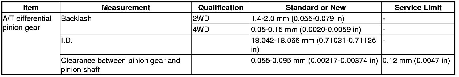 A/T Differential Pinion Gear Specification(s)