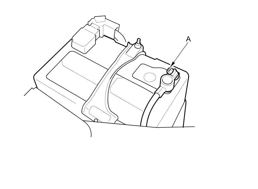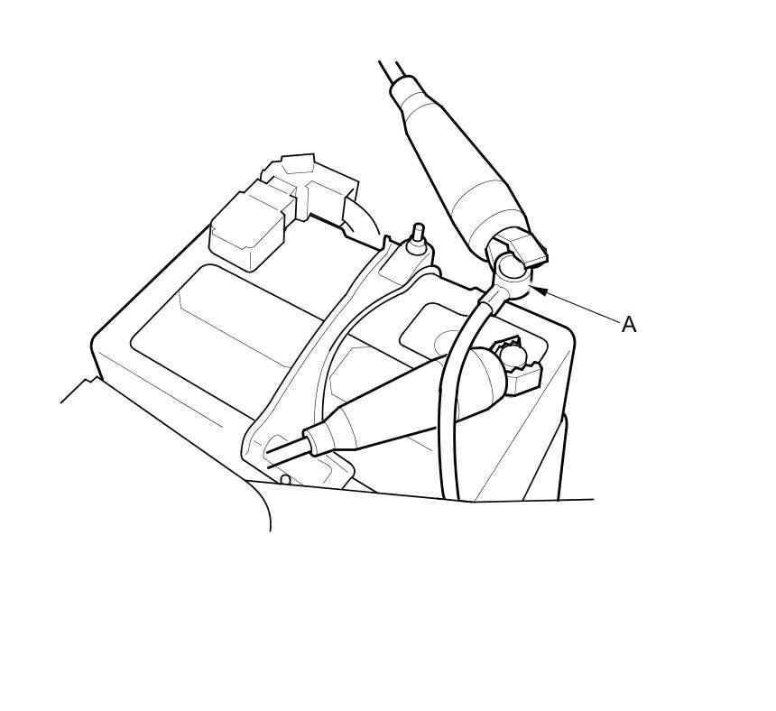 16. Disconnect the negative terminal (A) of the battery ground cable from the battery negative terminal post.