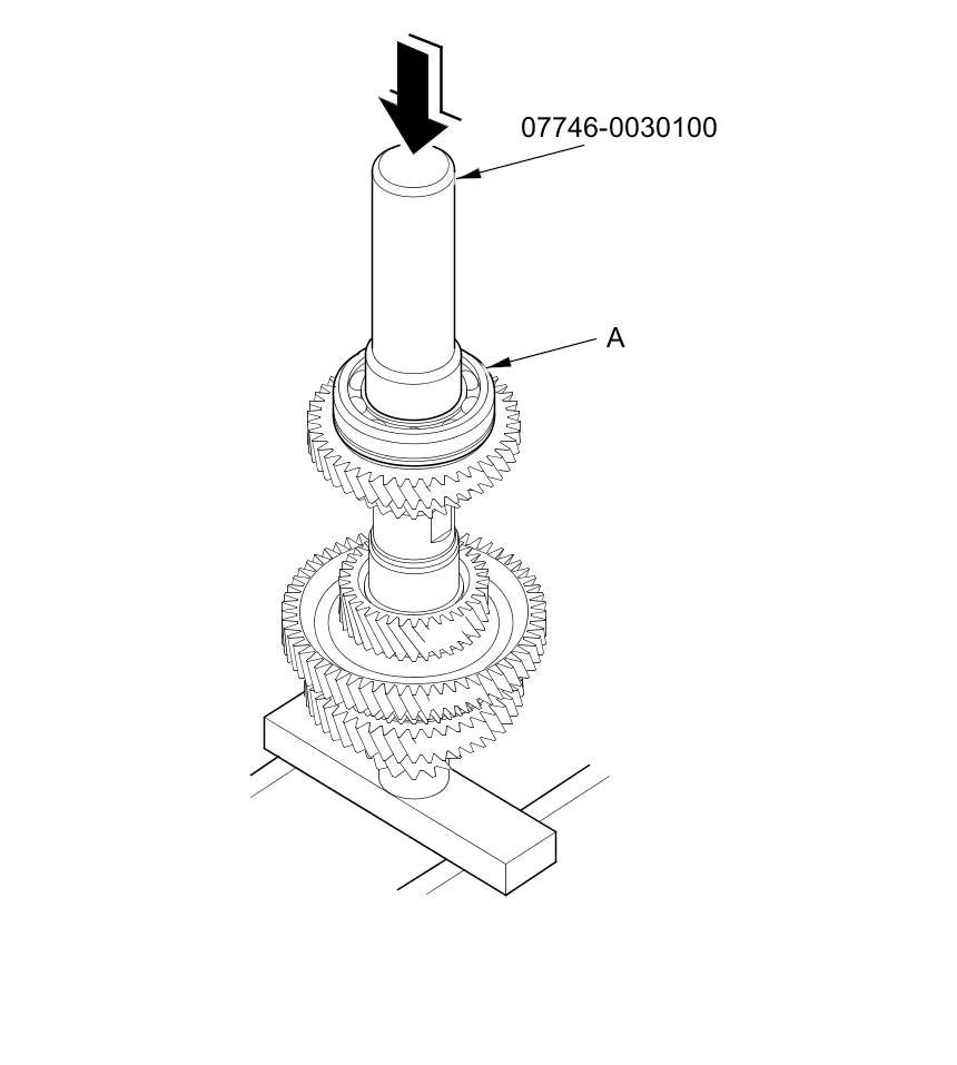 5. Install the ball bearing (A) over the countershaft, then press it into place using the 40 mm driver handle and a press.
