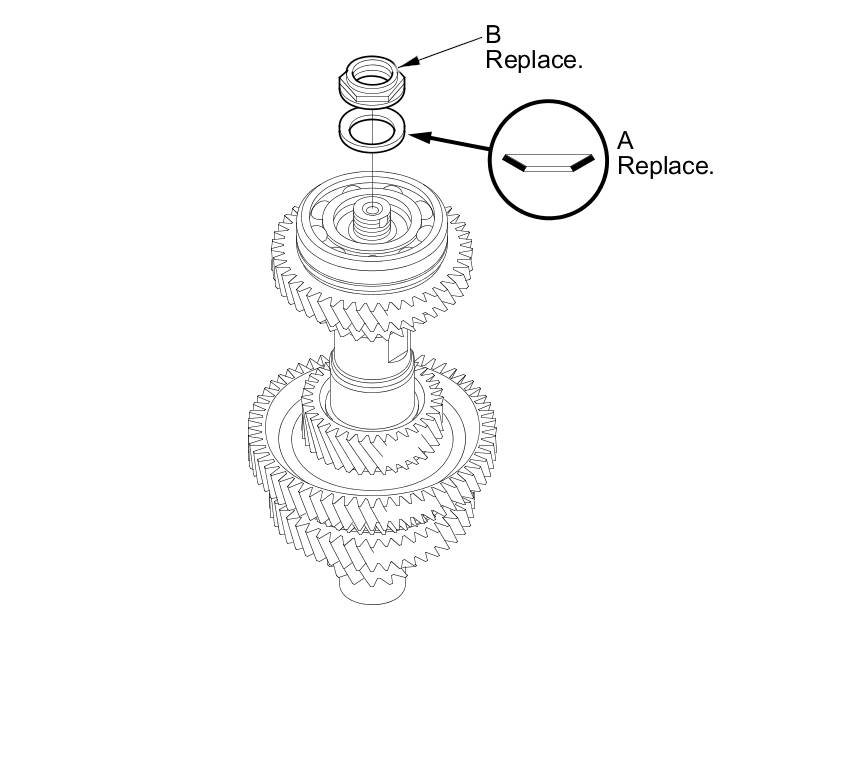 8. Stake the locknut into the shaft to a depth (A) of 0.7-1.3 mm (0.03-0.05 in) using a 3.5 mm punch (B).