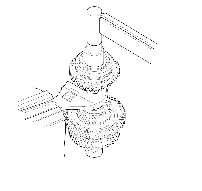 7. Hold the countershaft securely using a wrench clamped in a bench vise, and tighten the locknut to 167 N-m (17.0 kgf-m, 123 lbf-ft).