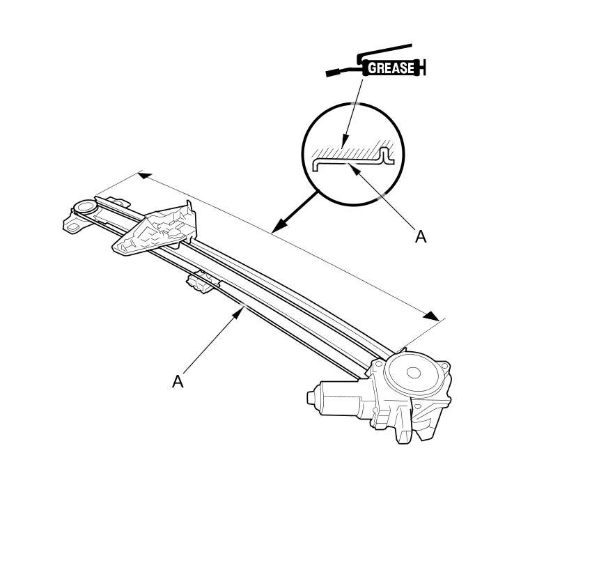 7. Apply multipurpose grease to all the sliding surfaces of the regulator (A) where shown.