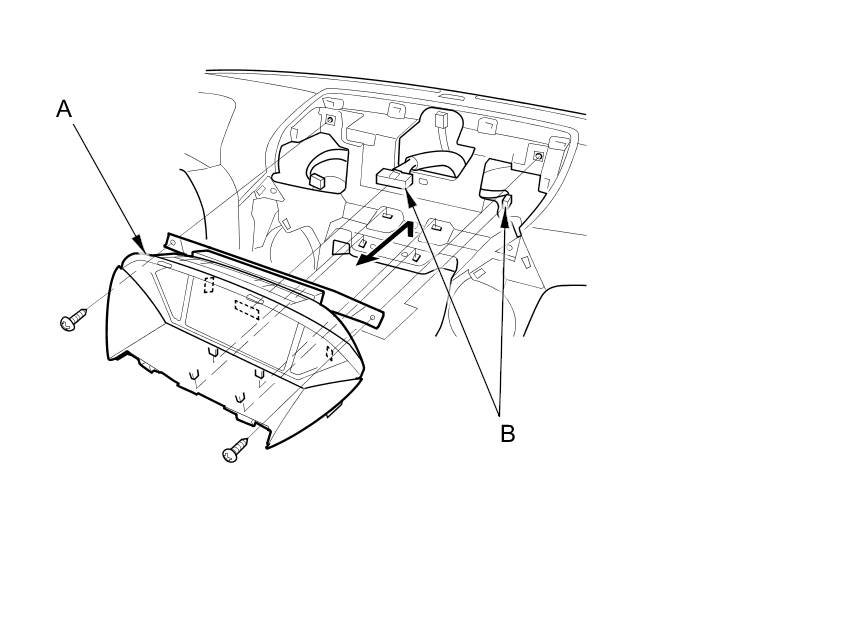 6. Install the navigation display unit in the reverse order of removal. Be careful not to drop the forward bolt behind the dashboard.