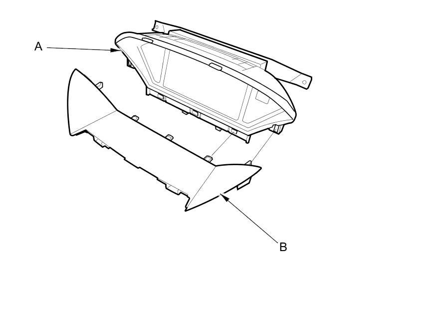 5. Separate the navigation display unit (A) and the tray (B).