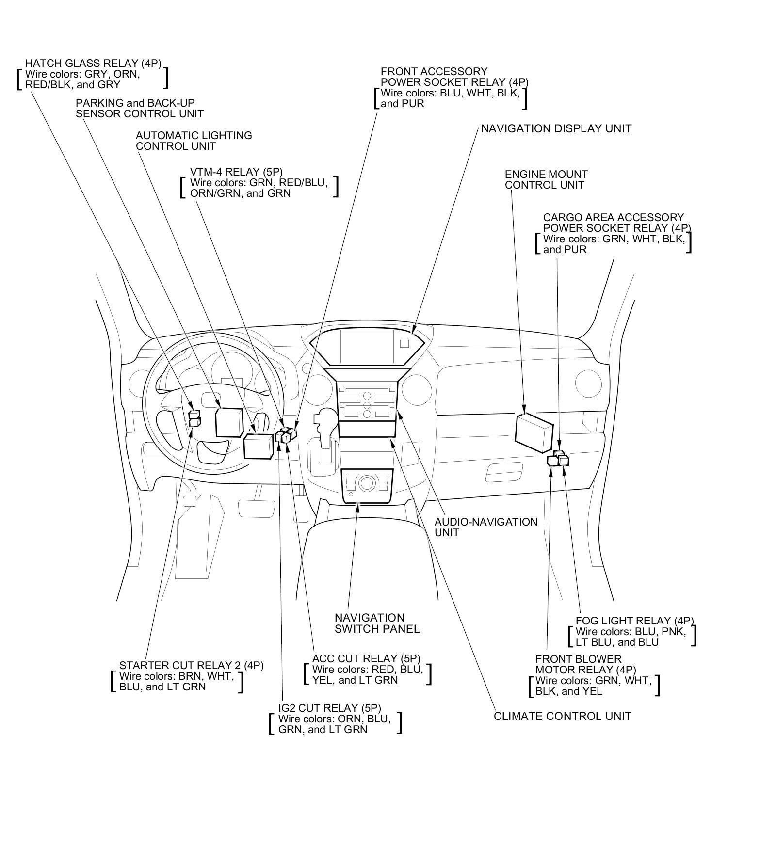 Relay and Control Unit Locations - Dashboard