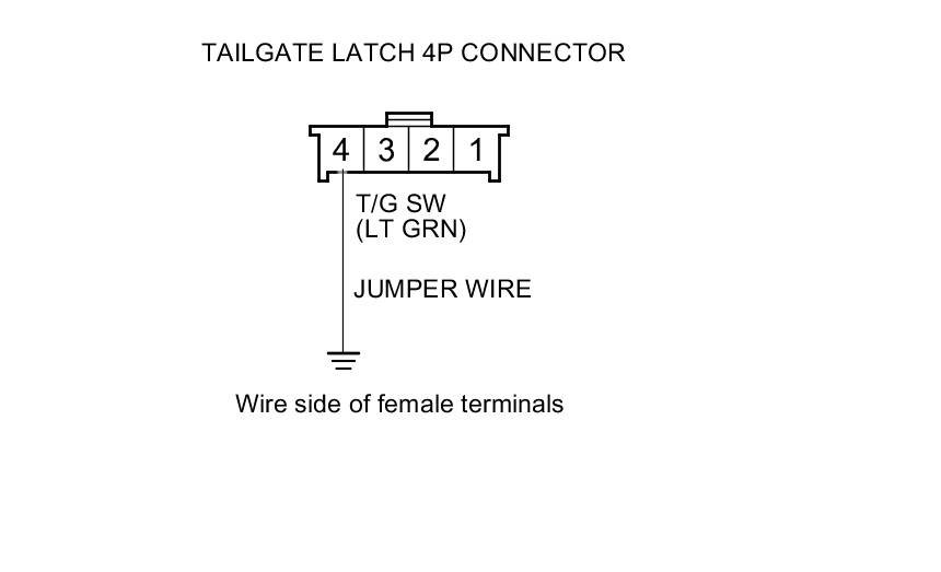 9. Connect tailgate latch 4P connector terminal No. 4 and body ground with a jumper wire.