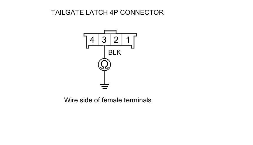 11. Check for continuity between tailgate latch 4P connector terminal No. 3 and body ground.