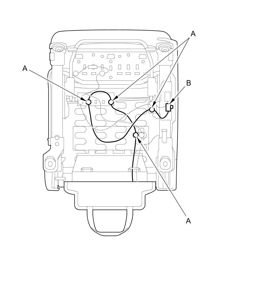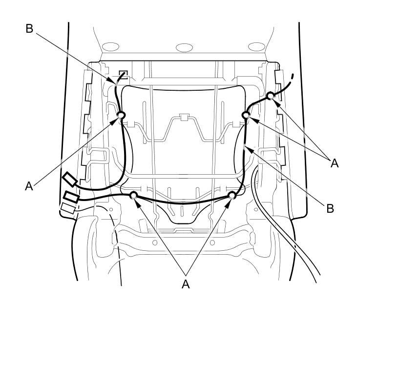 10. Passenger's seat: Detach the harness clips (A) fastening the OPDS sensor harnesses (B), then remove them.