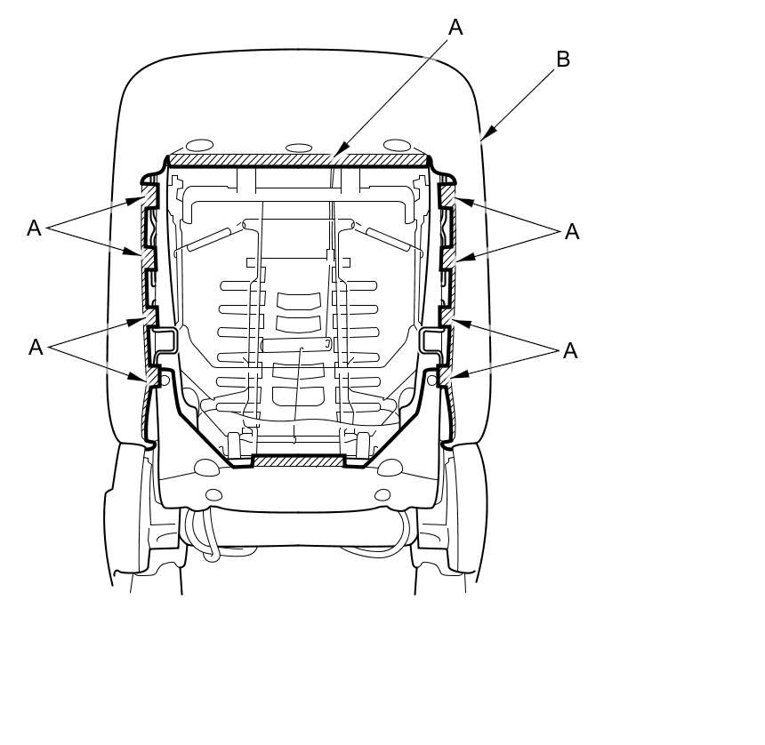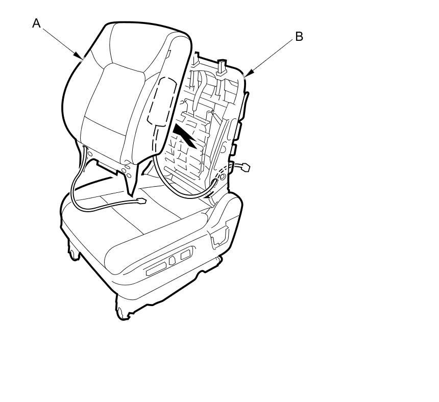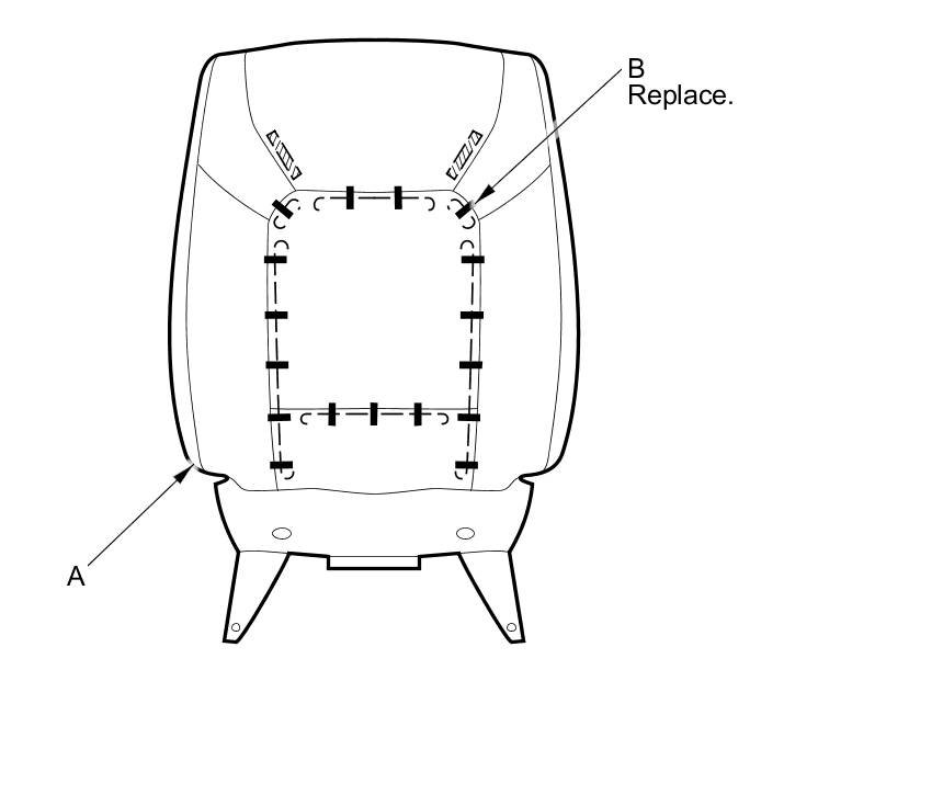 13. Remove the seat-back cover/pad (A) from the seat-back frame (B).