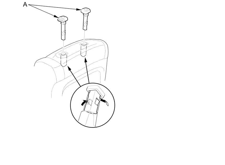 12. Pinch the tabs on the head restraint guides (A), and remove them from the seat-back.