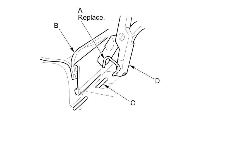 - Replace all of the upholstery rings (A) fastening the seat-back cover (B) and the pad wire (C) with new ones using commercially available upholstery ring pliers (D).