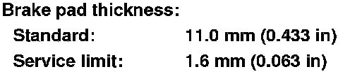 4. If any part of the brake pad thickness is less than the service limit, replace the front brake pads as a set.