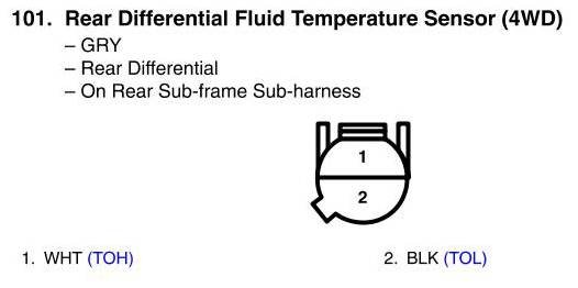 View 101 - Rear Differential Fluid Temperature Sensor Connector View (4WD)