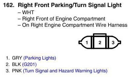 View 162 - Right Front Parking/Turn Signal Light Connector View