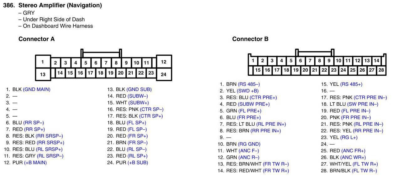 View 386 - Stereo Amplifier Connector View (Navigation)