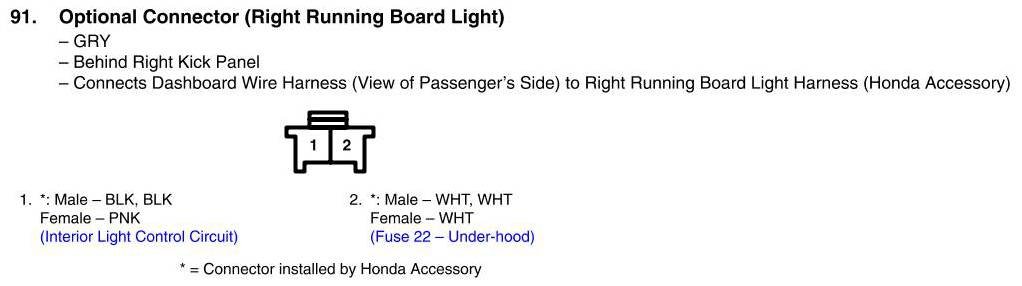 View 91 - Optional Connector (Right Running Board Light) Connector View