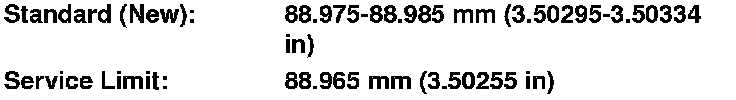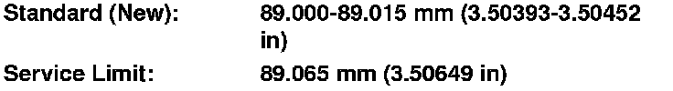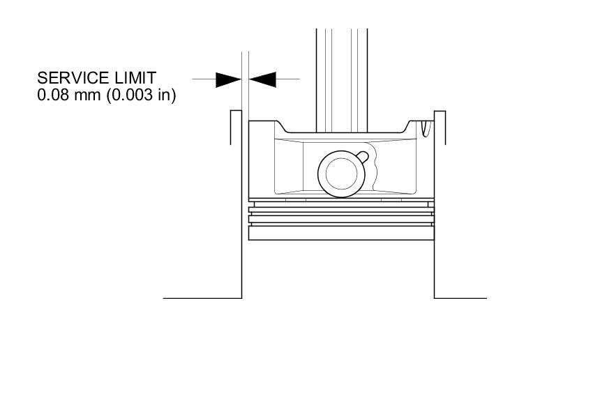 7. Calculate the difference between the cylinder bore diameter and the piston diameter. If the clearance is near or exceeds the service limit, inspect the piston and the cylinder bore for excessive wear.