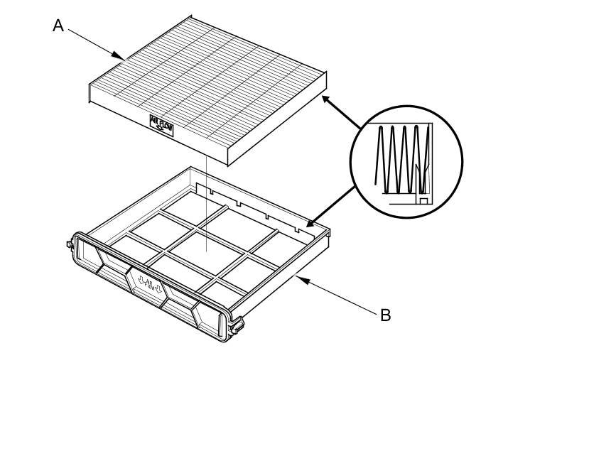 3. Remove the filter (A) from the housing (B), and replace the filter.