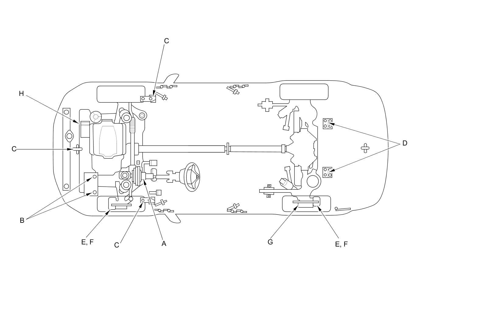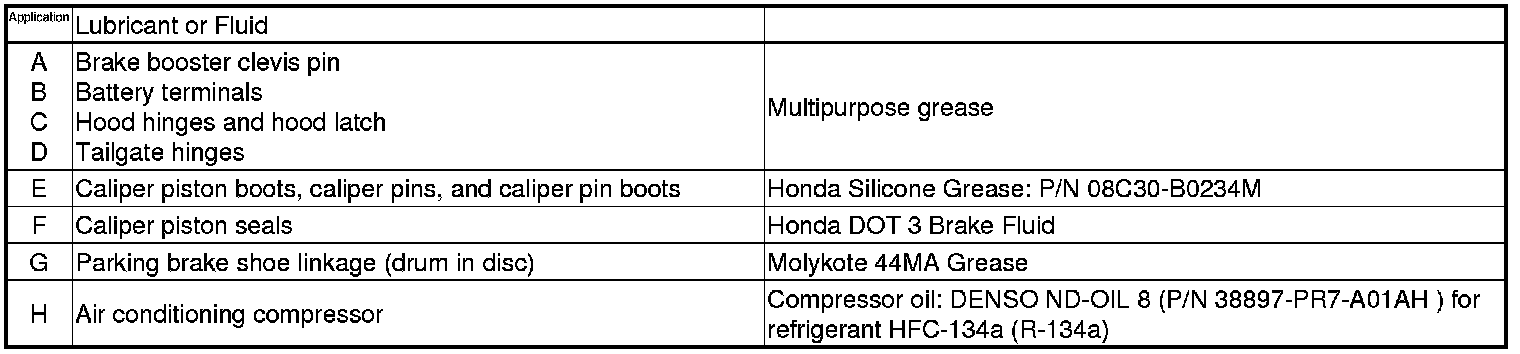 - Lubricate the following areas using the recommended lubricants and fluids.