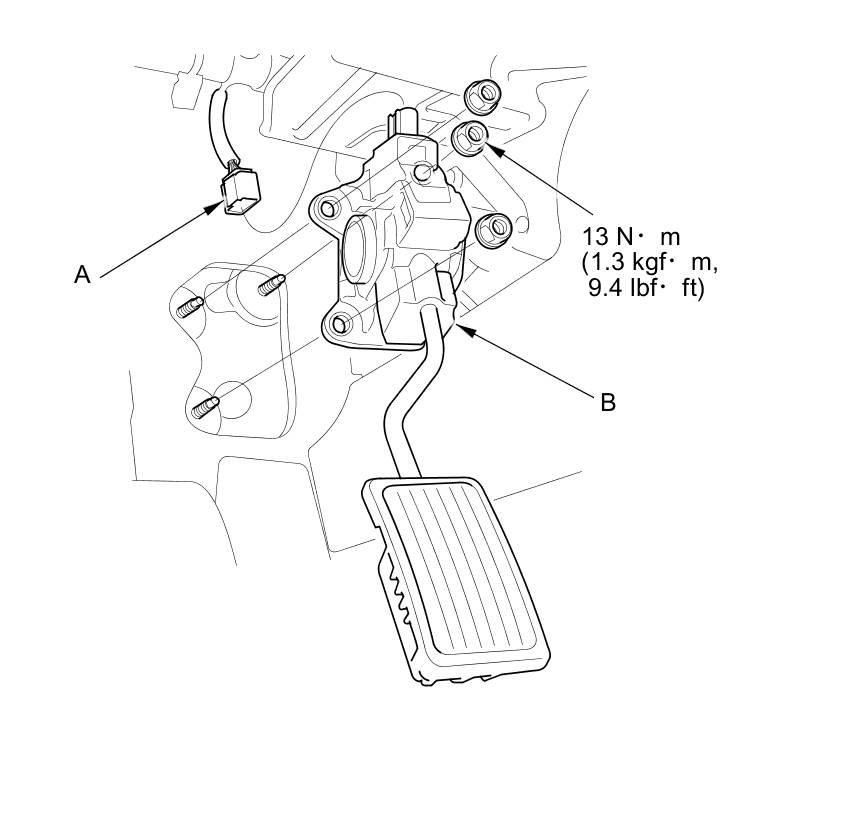 NOTE: The APP sensor is not available separately. Do not disassemble the accelerator pedal module.